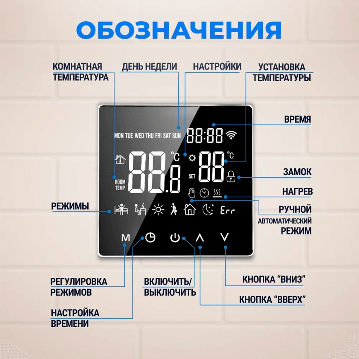 • Не нужно беспокоиться при отключении электропитания! После включения цифровой термостат для теплого пола автоматически использует последний режим работы подогрева.